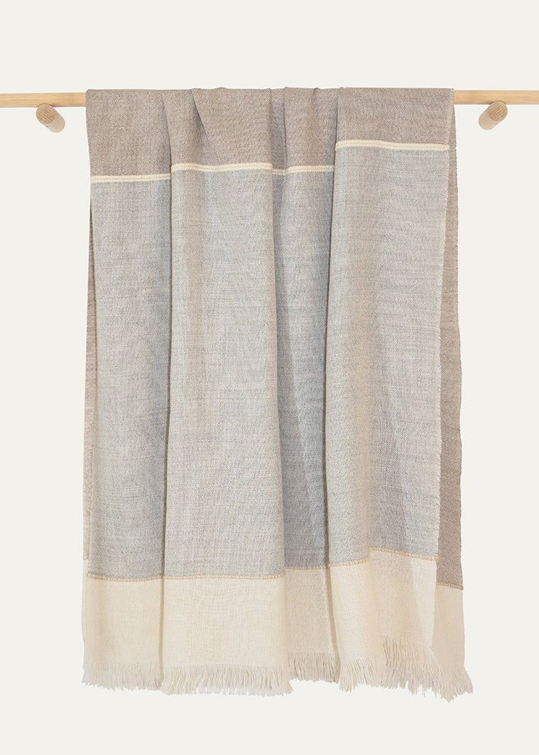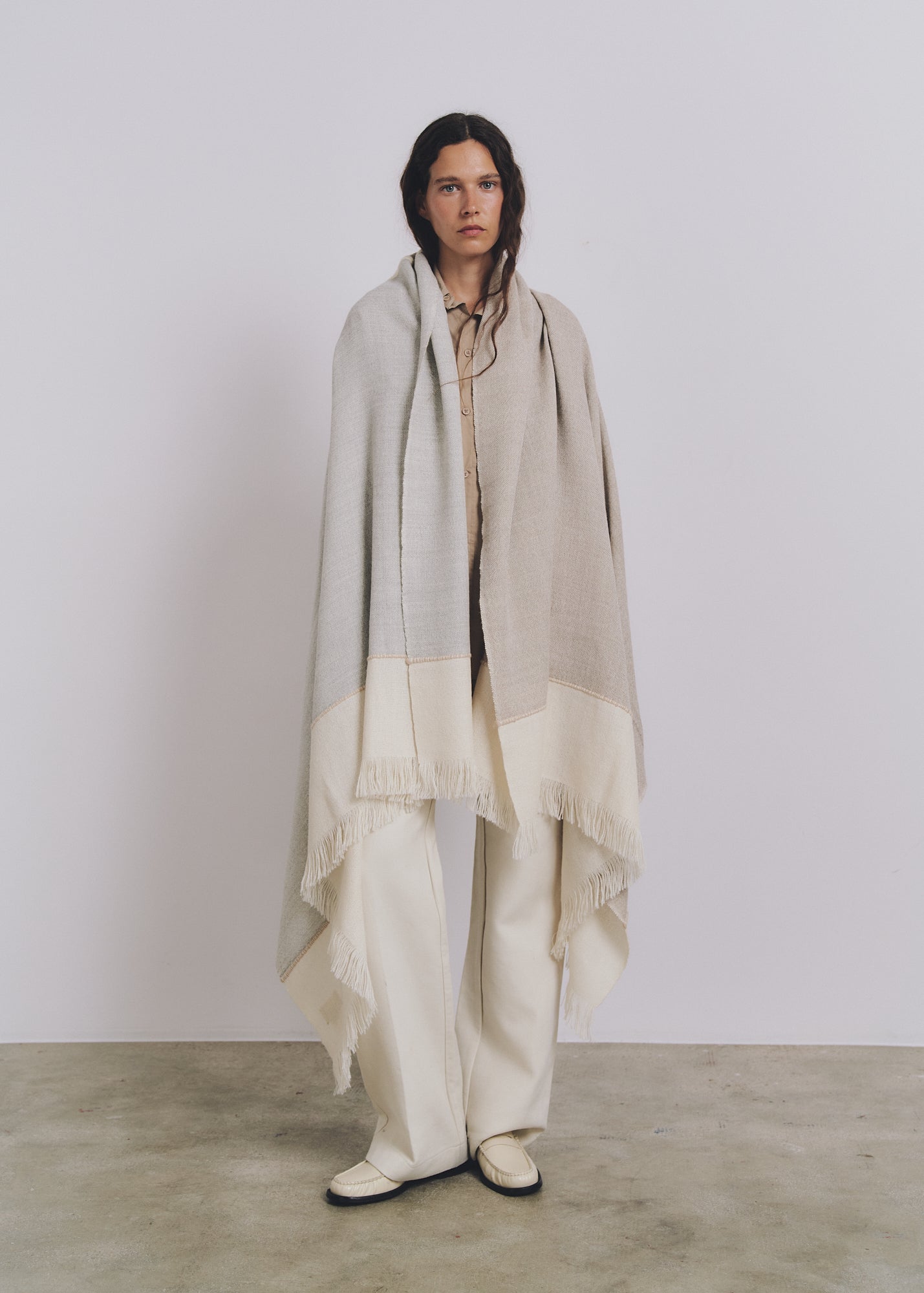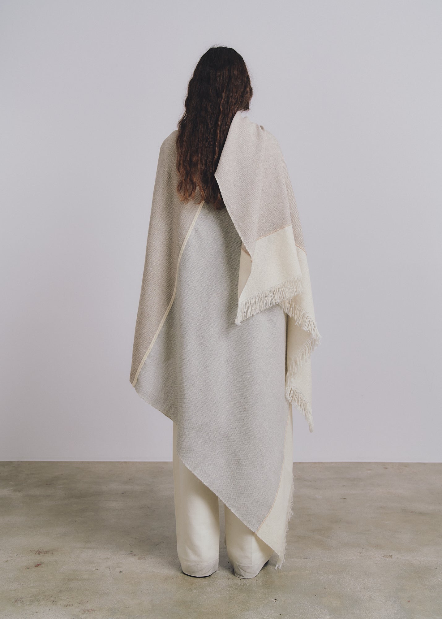 Increíblemente suave y cálida, esta manta está tejida manualmente en los Andes a partir de fibra 100% baby alpaca, una de las fibras naturales más exquisitas que existen. Combinando diseño moderno y tradición artesanal, es una pieza muy versátil que puede utilizarse tanto como manta o como chal XL en los días más fríos, aportando textura a los espacios o looks más minimalistas y elegantes.