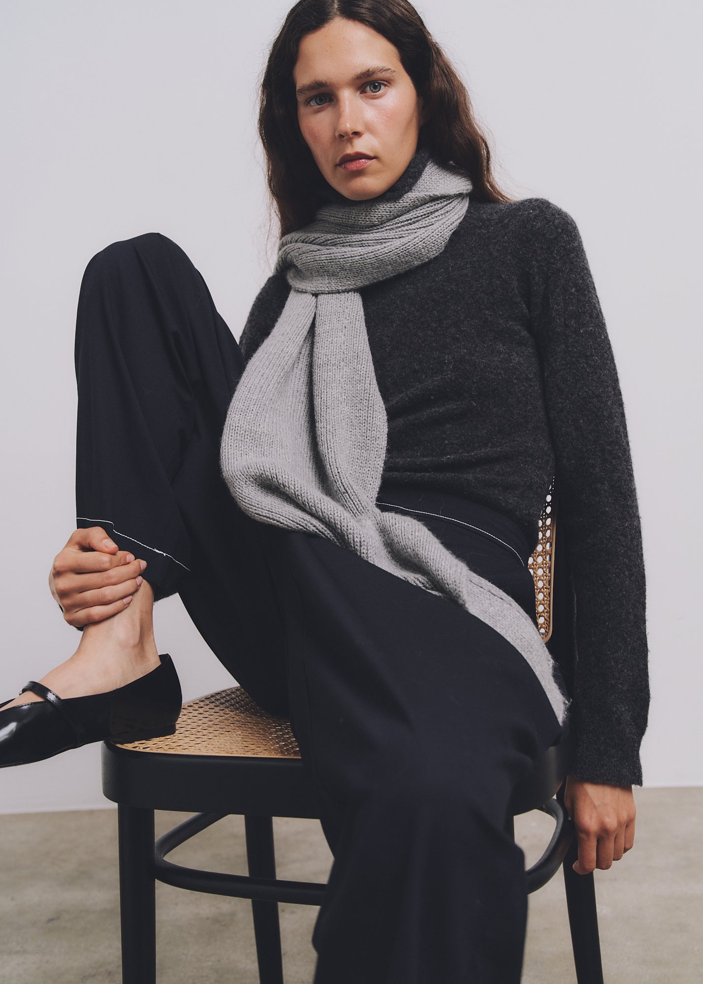 Tejida artesanalmente con fibra 100% baby alpaca, la bufanda destaca por su textura increíblemente suave y esponjosa, que envuelve la piel en un perfecto equilibrio de confort y ligereza.