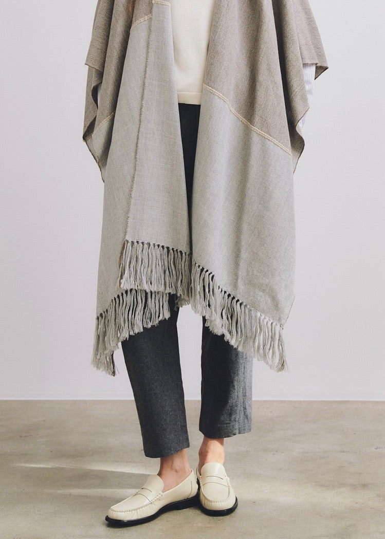 Estilo y exquisitez definen el poncho Guillermina, que combina diseño moderno y tradición artesanal. Una pieza elaborada en telar manual con fibra 100% baby alpaca por familias de artesanos de los Andes Peruanos.