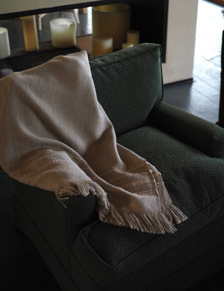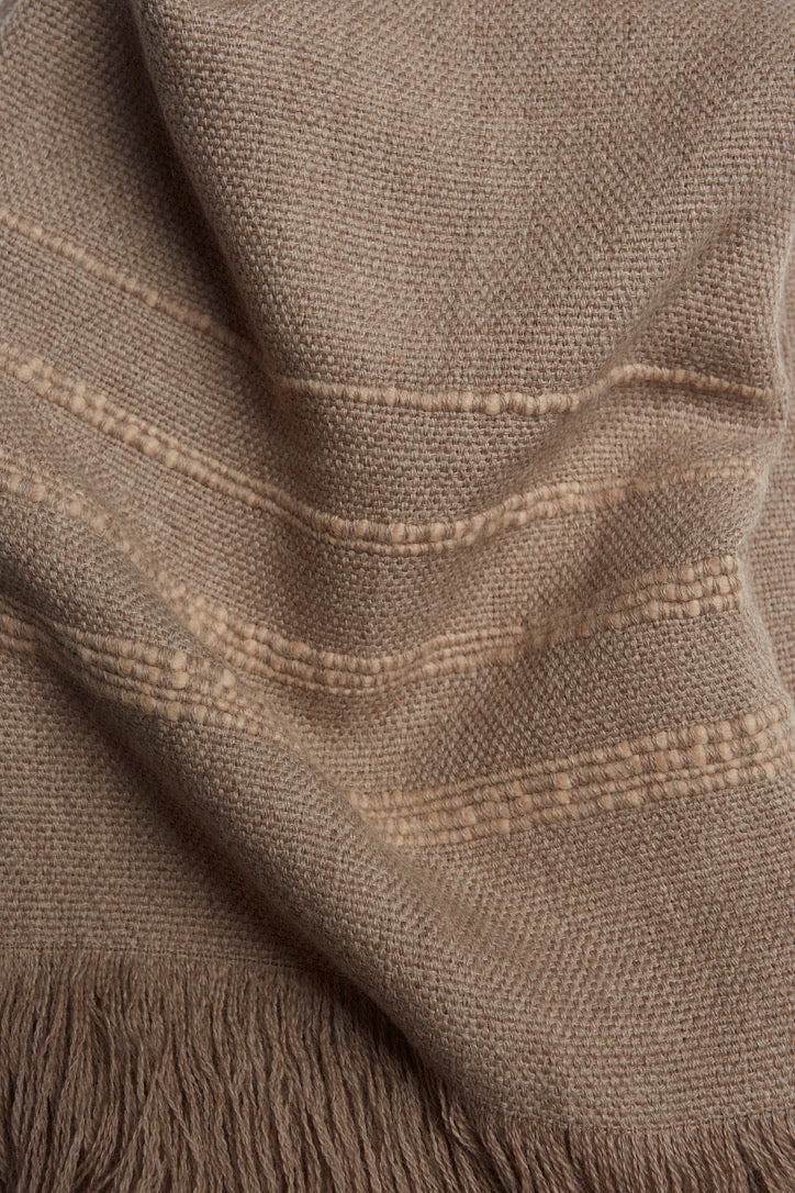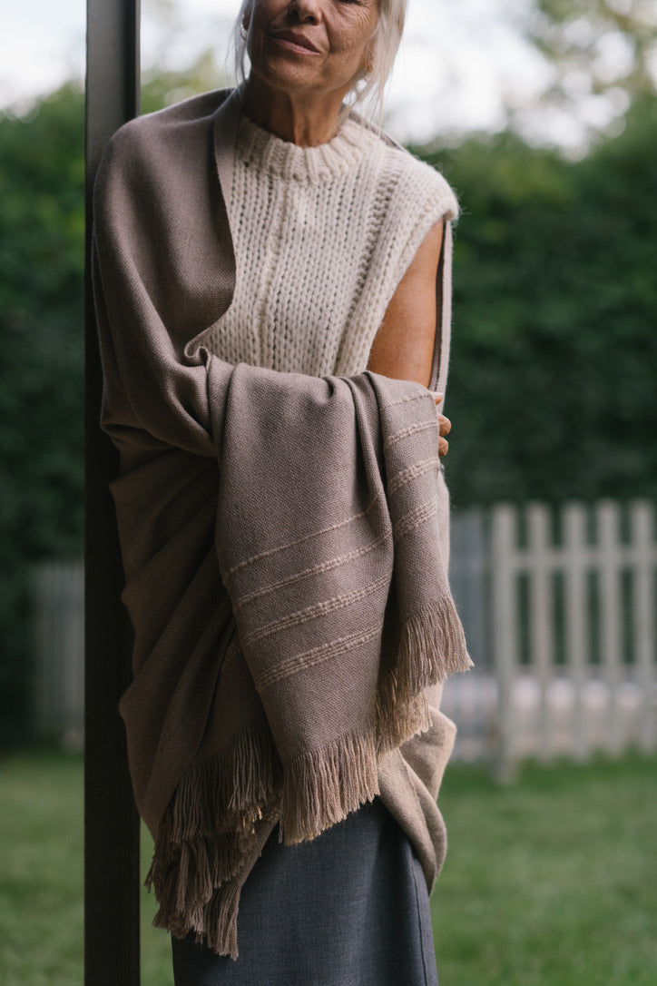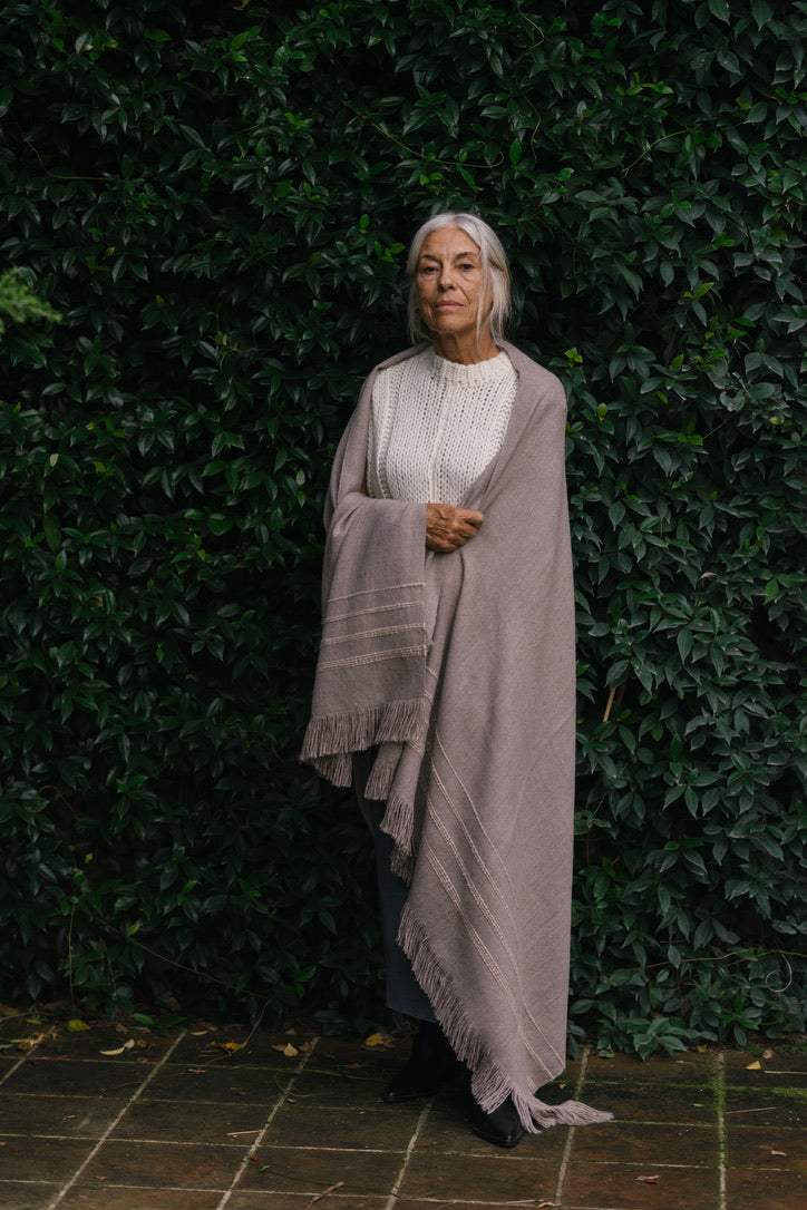Increíblemente suave y cálida, esta manta está tejida manualmente en los Andes a partir de fibra 100% baby alpaca, una de las fibras naturales más exquisitas que existen. Combinando diseño moderno y tradición artesanal, es una pieza muy versátil que puede utilizarse tanto como manta o como chal XL en los días más fríos, aportando textura a los espacios o looks más minimalistas y elegantes.