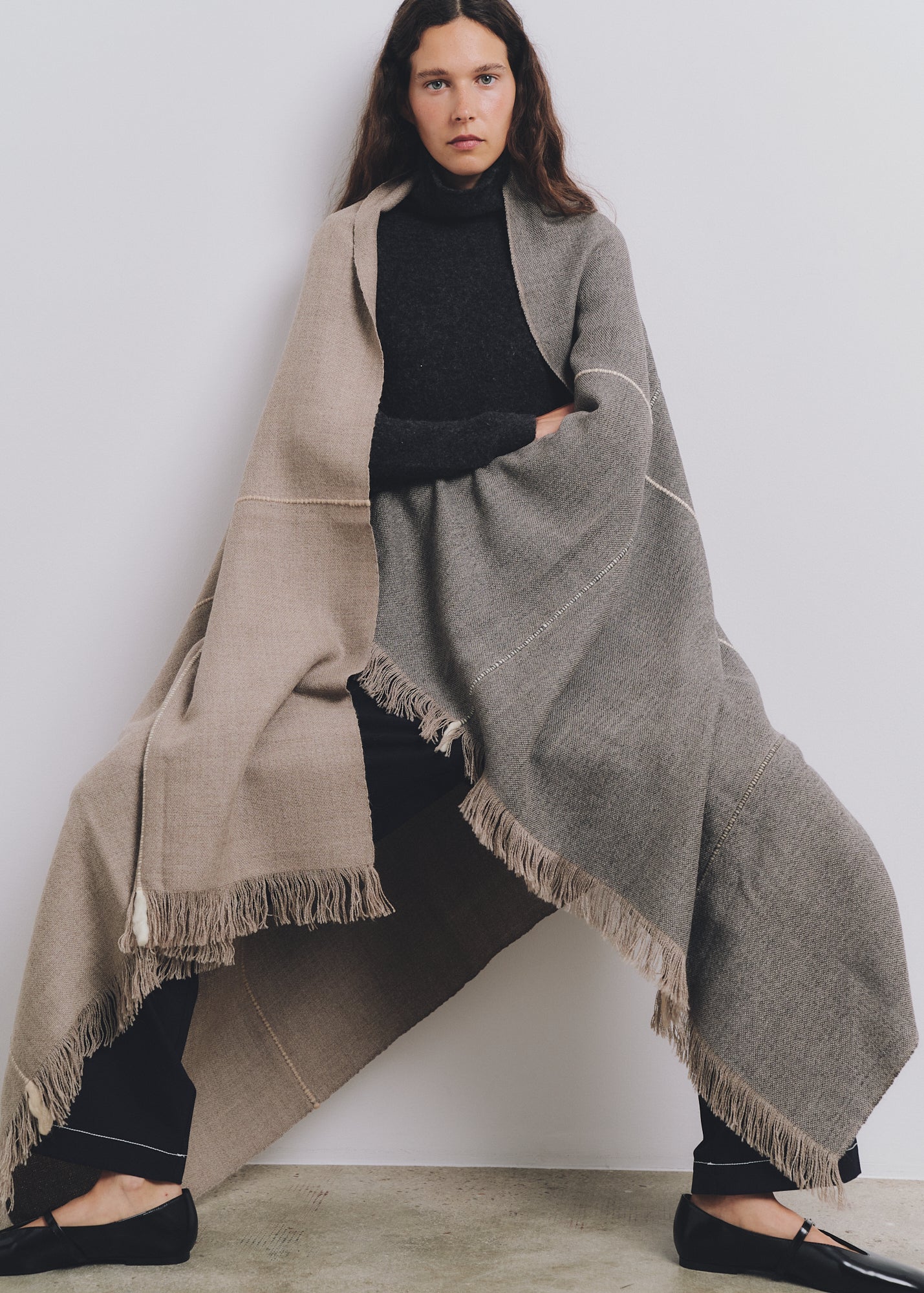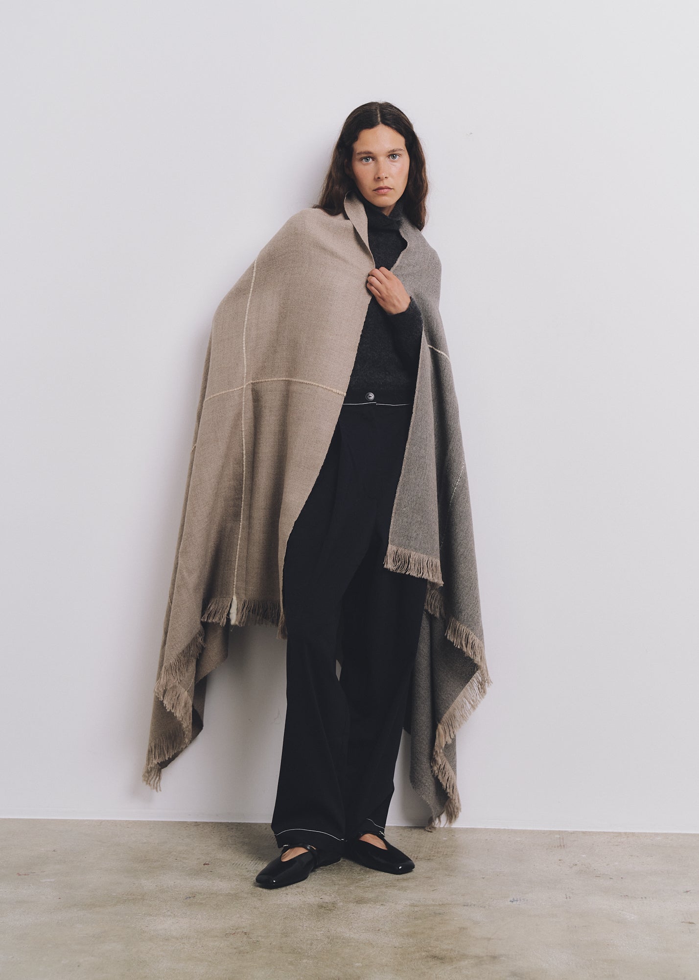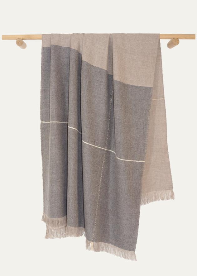 Increíblemente suave y cálida, esta manta está tejida manualmente en los Andes a partir de fibra 100% baby alpaca, una de las fibras naturales más exquisitas que existen. Combinando diseño moderno y tradición artesanal, es una pieza muy versátil que puede utilizarse tanto como manta o como chal XL en los días más fríos, aportando textura a los espacios o looks más minimalistas y elegantes.